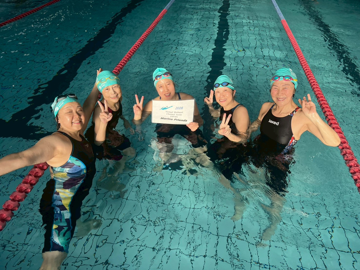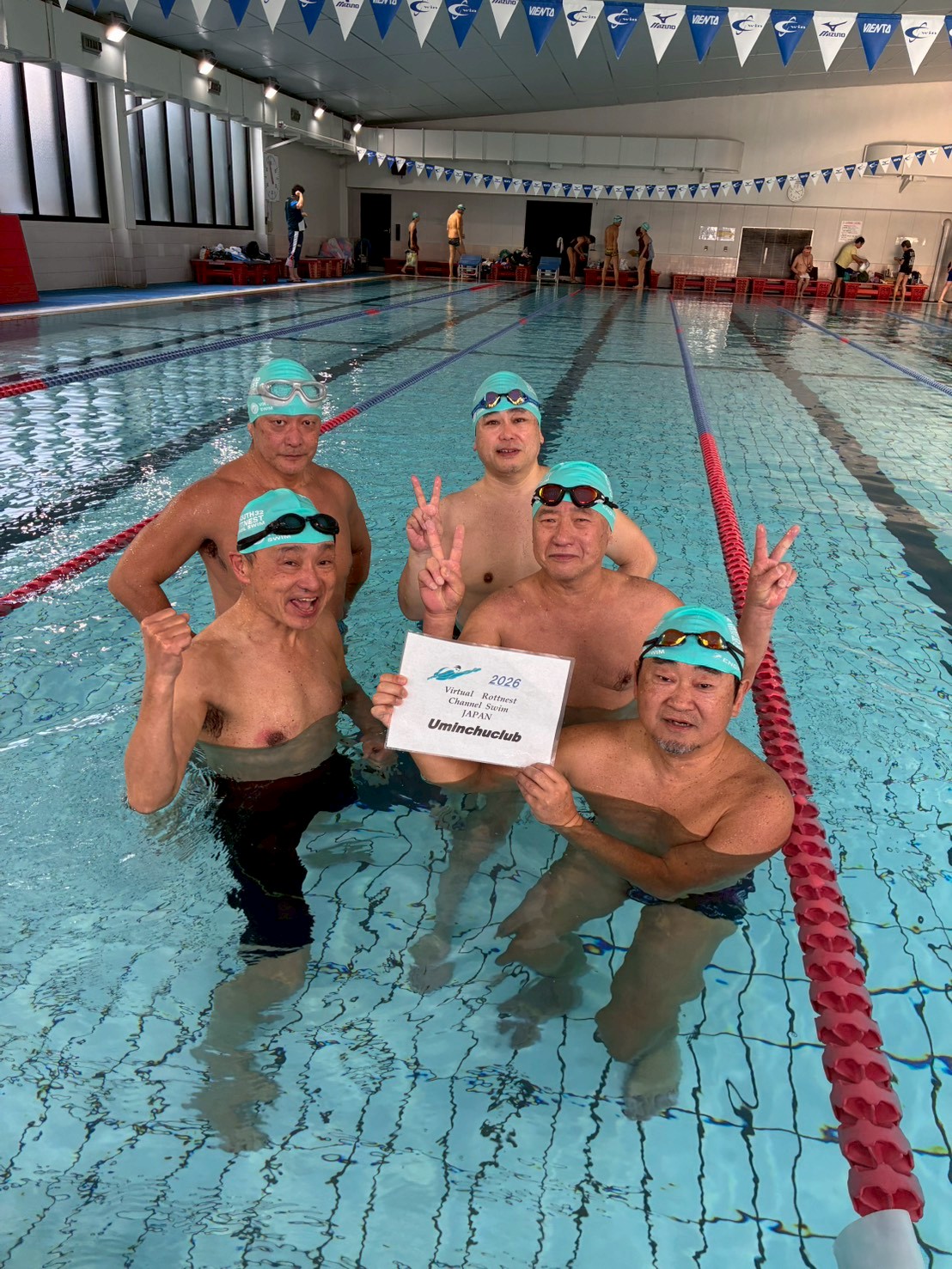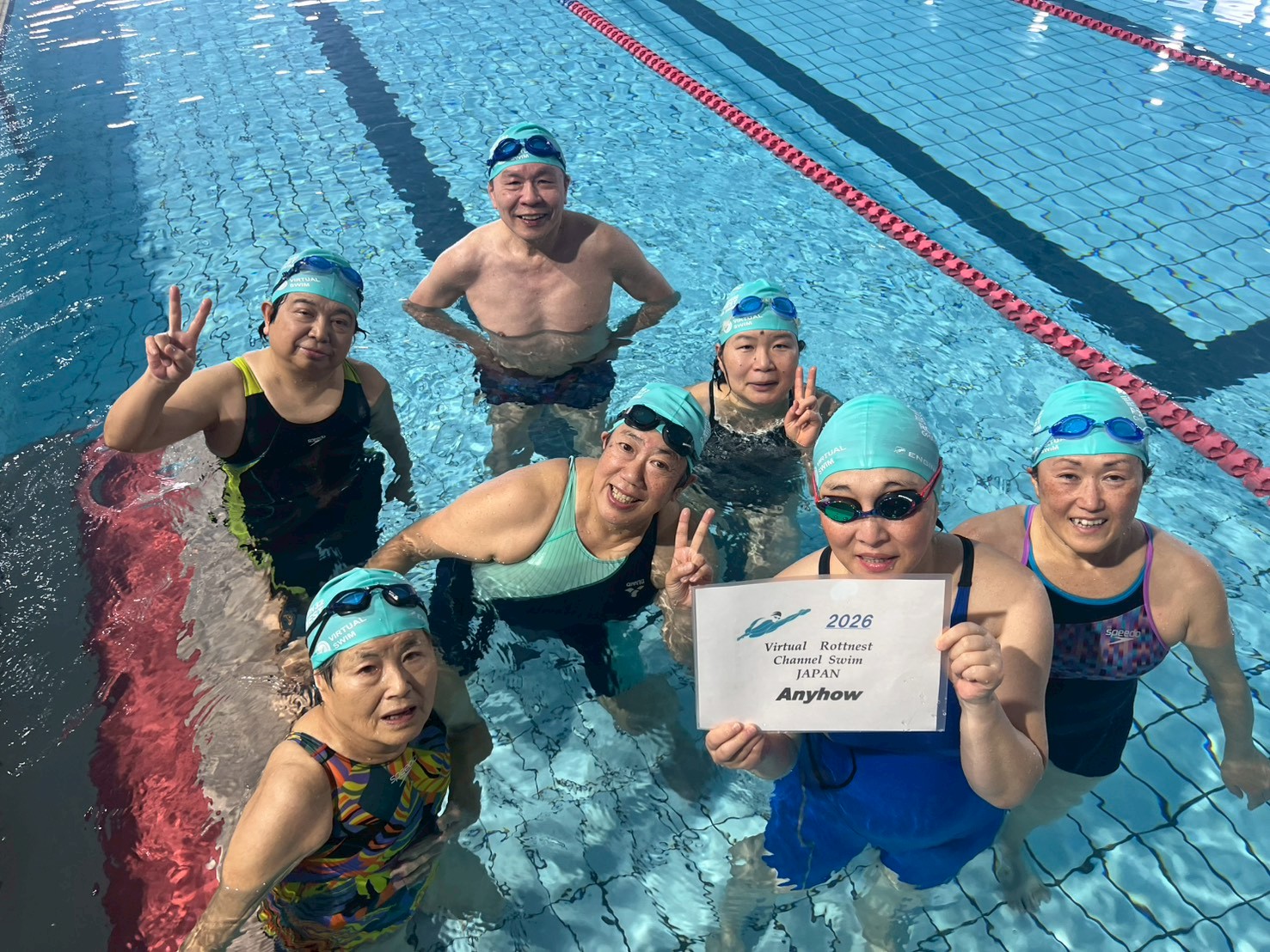 皆で力を合わせて20km泳ぎつなぎました。