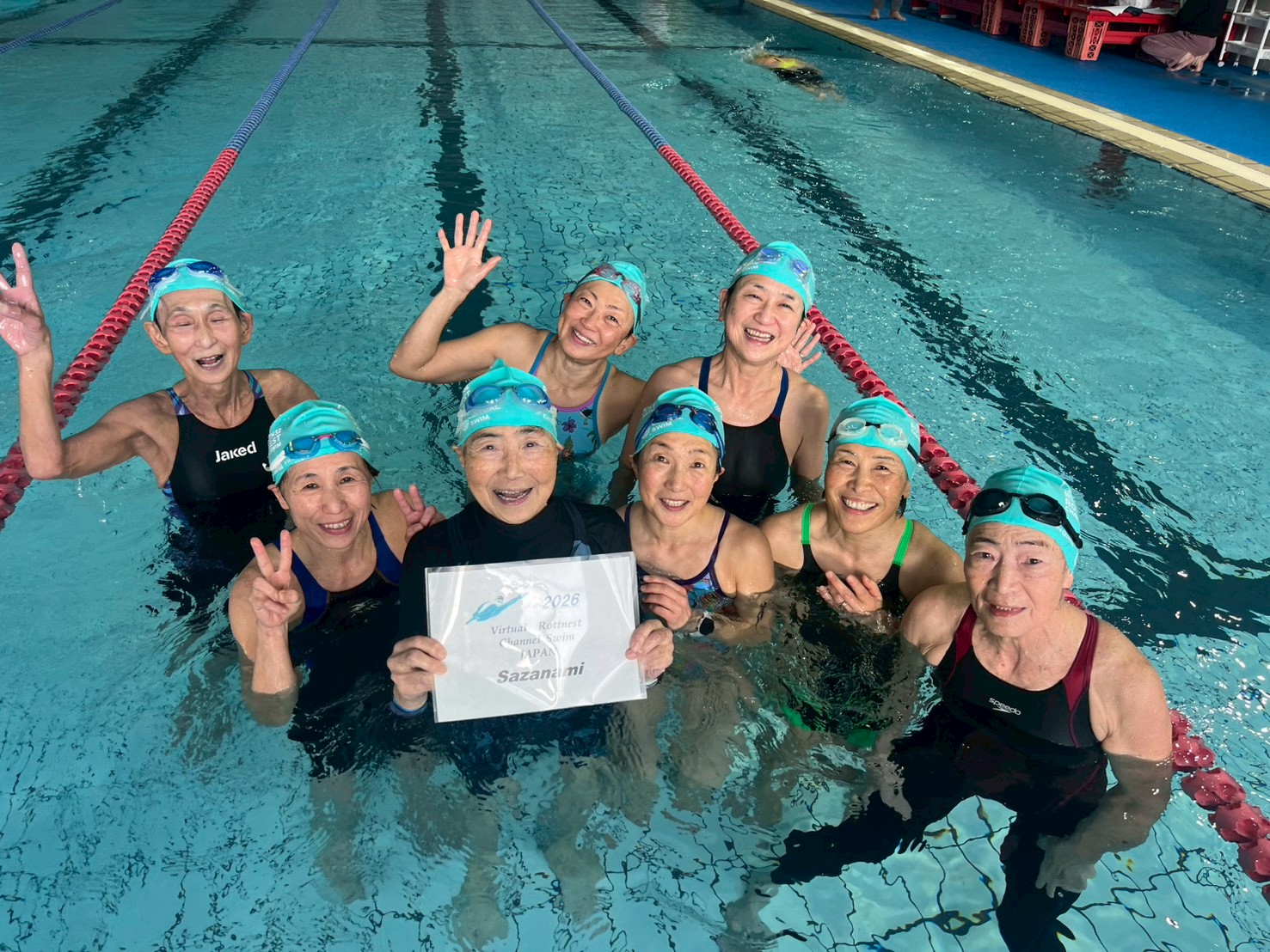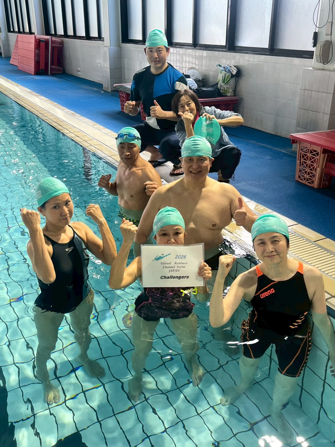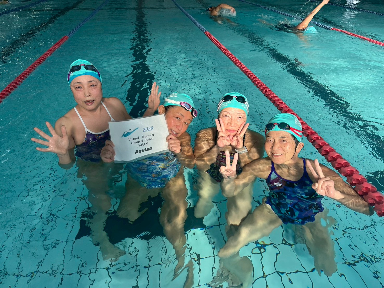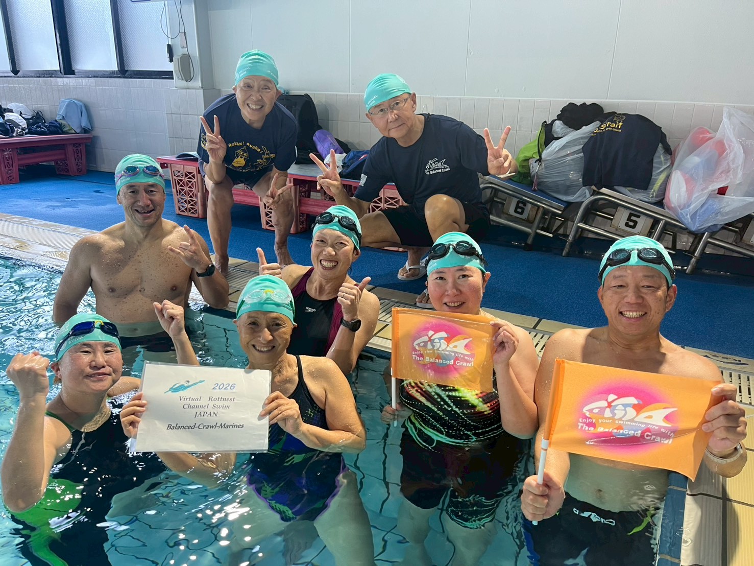 皆で力を合わせて20km泳ぎつなぎました。
